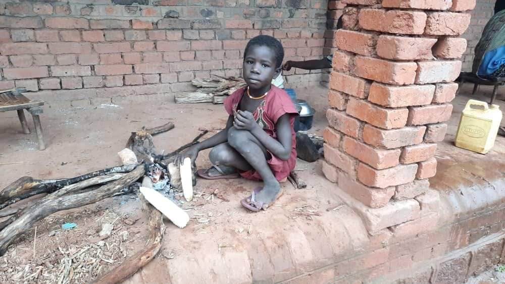 After month of conflict in Tambura County, children continue to starve as this year’s farm produce were all destroyed, this small girl is roasting dry maize as many more are reported starving to death within the Internal Displaced Camp in Tambura and Ezo Counties.